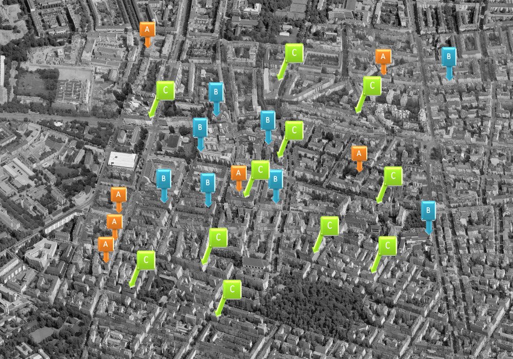 GEOGRAFISCHE INFORMATIOSSYSTEMEGeodatenWie wirkt sich der Lärm einer Straße auf die umliegenden Gebäude aus? Wie setzt sich die Bevölkerung in einem Stadtteil zusammen? Wie verteilt sich die Wirtschaftskraft auf ein Land? Spannende und wichtige Fragen – wir kennen die Antwort. Dank der Visualisierung von Geodaten lassen sich komplexe Sachverhalte zuverlässig und übersichtlich darstellen – als Grundlage für eine sichere Für das Erfassen von Geodaten braucht es weitreichende Erfahrung und Präzision – die Voraussetzung für jedes hochwertige kartografische Produkt. Deshalb stammen die von uns verwendeten Geodaten aus erstklassigen Quellen wie z.B. Datenbanken öffentlicher Verwaltungen, internationale Behörden, oder wir zeichnen sie einfach selbst auf. Luftaufnahmen, historische Karten und vor allem Karten aus statischen Grafikprogrammen wie z.B. Freehand oder Illustrator weisen Lageungenauigkeiten auf. Verursacht werden diese beispielsweise durch unpräzise Messungen, Fotoobjektive, Höhenunterschiede oder die Erdkrümmung. Wir können diese Ungenauigkeiten mit moderner Technik ausgleichen.  |